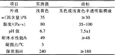 (3)由最佳工藝條件制成的改性PVA商標膠,其外觀呈淺黃色半透明黏稠膠液、耐冰水時間為49h、凝固點為3℃ 、黏度為80 Pa·S、保質期為240 d和pH值為6.7。
